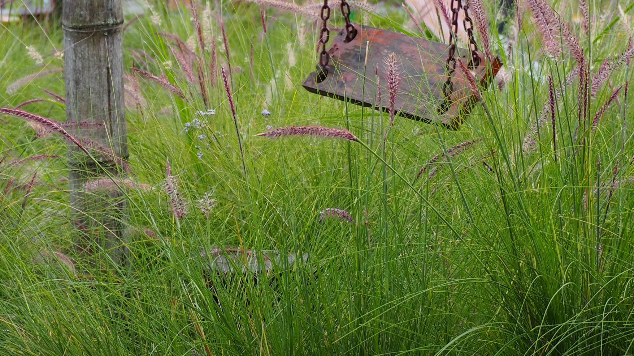Saat berjalan di area taman Agrowisata Gunung Sari, saya menemukan banyak elemen kecil yang sering dilewatkan orang. Salah satunya adalah spot sederhana ini—tanaman liar, rumput tinggi, dan benda-benda yang tampak ditinggalkan.